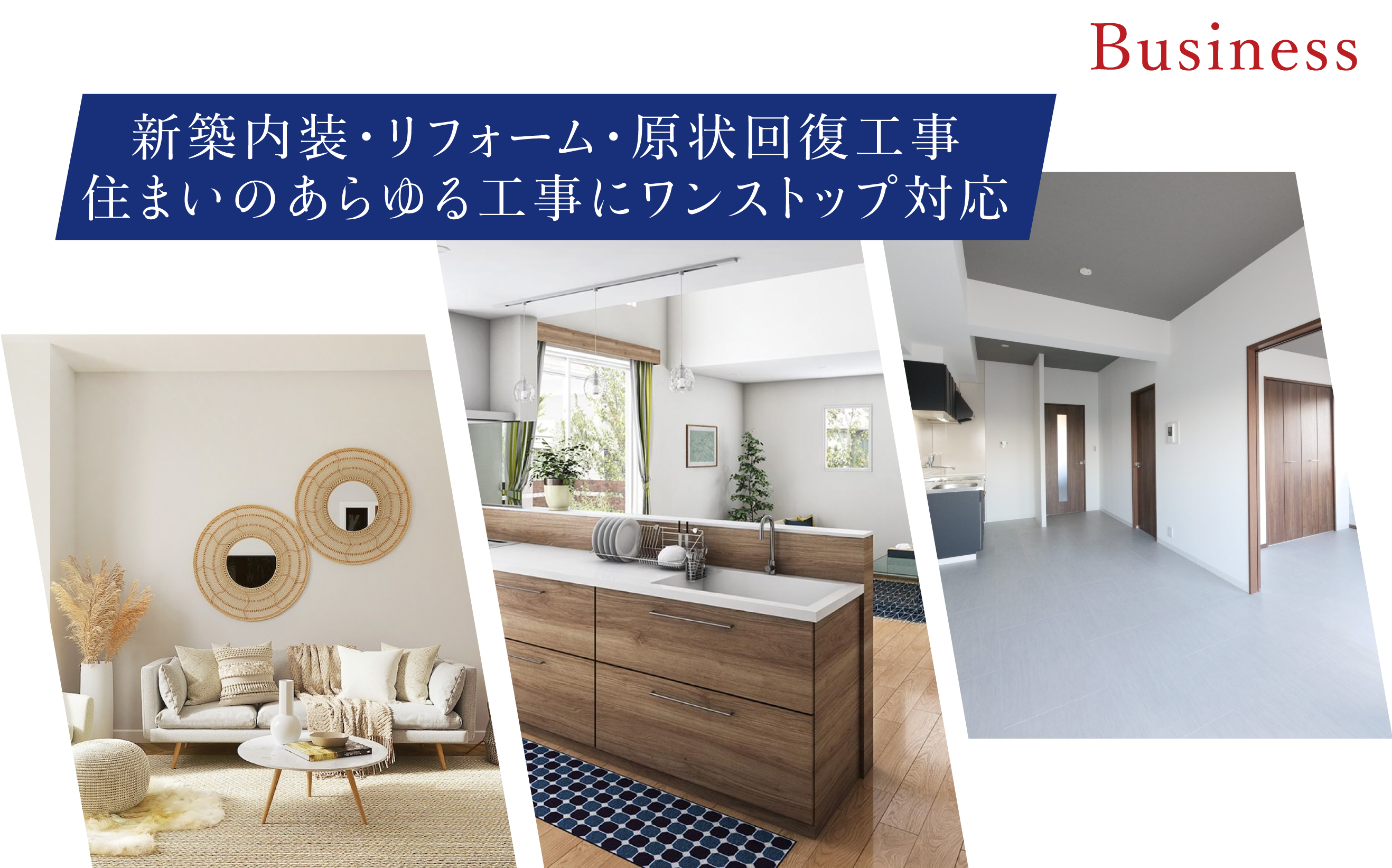 当社は、新築からリフォーム、原状回復まで、建物に関わる幅広い工事をワンストップで対応しています。