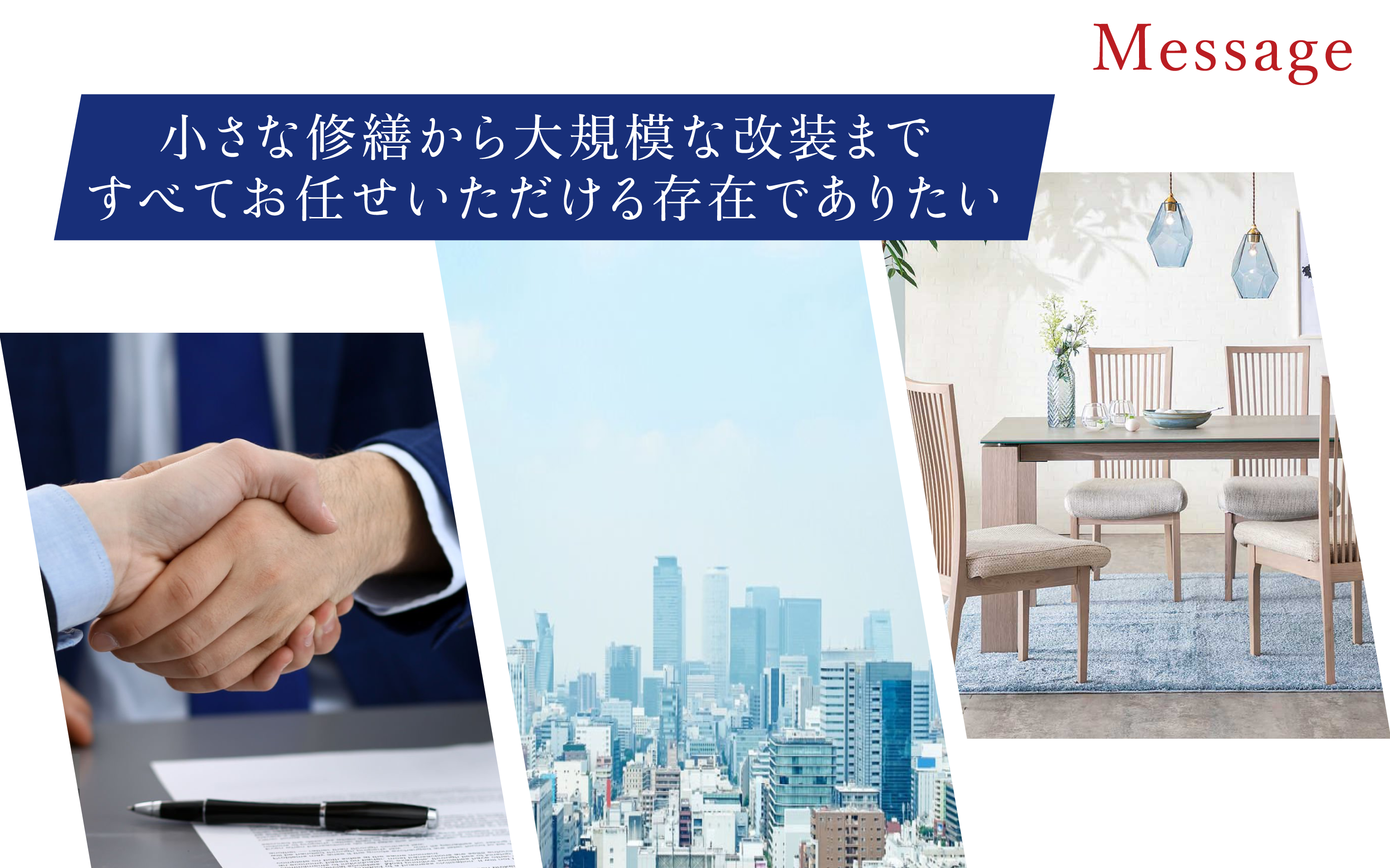 - 「小さな修繕から大規模な改装まで、すべてお任せいただける存在でありたい」──その思いを胸に、私たちは日々技術を磨き、信頼されるパートナーとして歩み続けます。 今後とも、変わらぬご愛顧とご支援を賜りますよう、心よりお願い申し上げます。